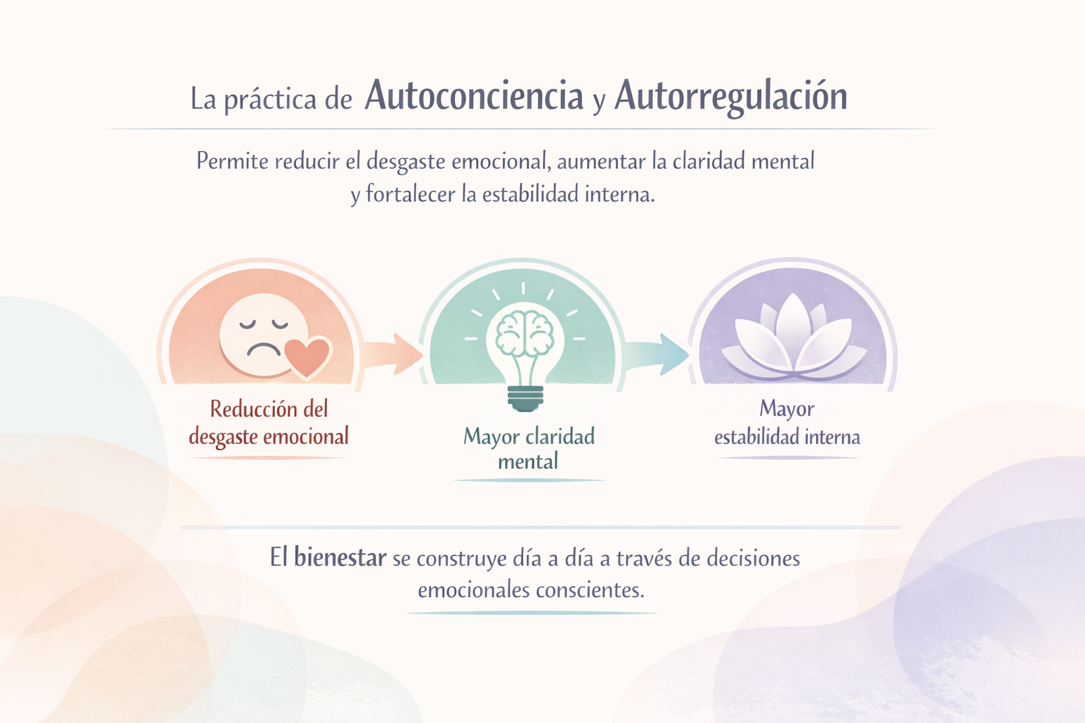 La práctica constante de autoconciencia y autorregulación permite reducir el desgaste emocional, aumentar la claridad mental y fortalecer la sensación de estabilidad interna. El bienestar se construye día a día a través de decisiones emocionales conscientes.