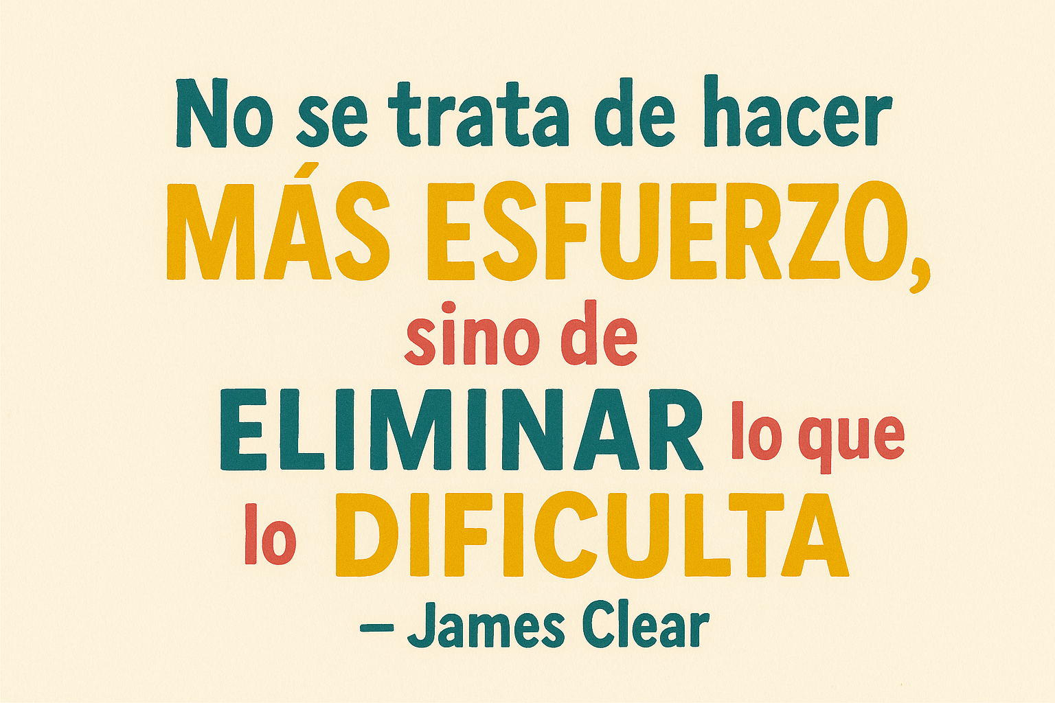 Reducción de fricción La fricción es cualquier obstáculo que aumenta el esfuerzo necesario para realizar un hábito. Reducirla puede transformar una acción compleja en una rutina natural. Clear explica que incluso cambios mínimos —como mover un objeto, reorganizar un espacio o preconfigurar herramientas— tienen un gran impacto en la probabilidad de iniciar un hábito.