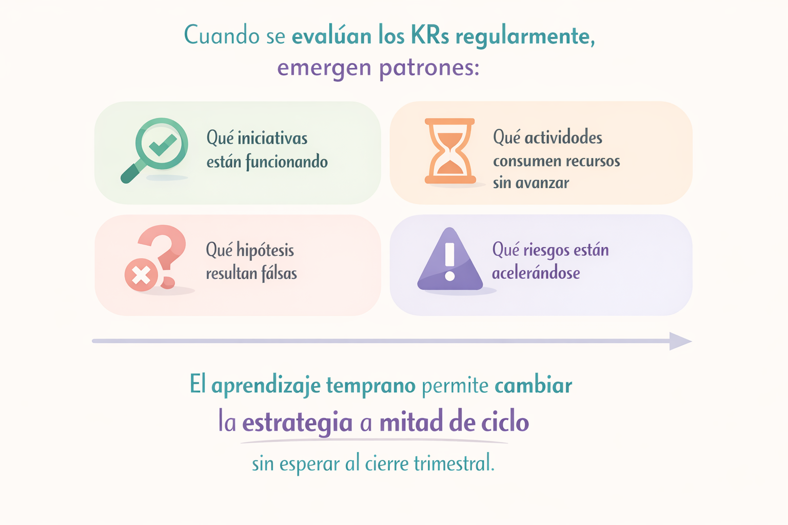 Uno de los valores centrales del sistema es la capacidad de aprender rápido. Cuando se evalúan los KRs regularmente, emergen patrones: