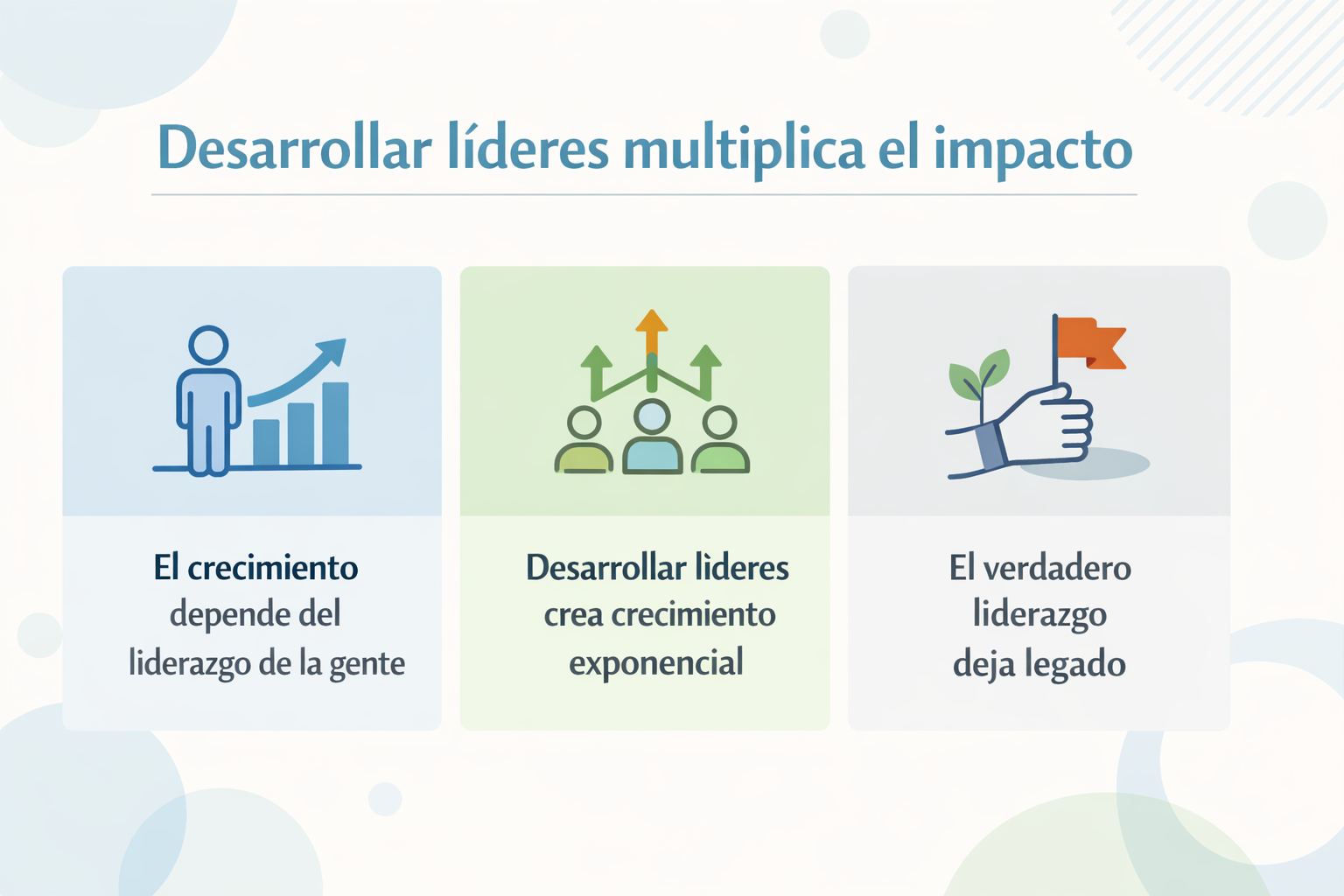 El crecimiento de una organización está directamente ligado al potencial de su gente: cuando el líder crece, todos crecen; cuando se estanca, todos se estancan. La ley del crecimiento explosivo establece que si guías seguidores, crecerás; pero si desarrollas líderes, multiplicarás el crecimiento. Maxwell explica que quienes están más cerca del líder determinan su éxito, que toda organización sufre escasez de liderazgo y que los líderes atraen líderes semejantes. La influencia aumenta cuando el líder reconoce, guía y equipa nuevos liderazgos.