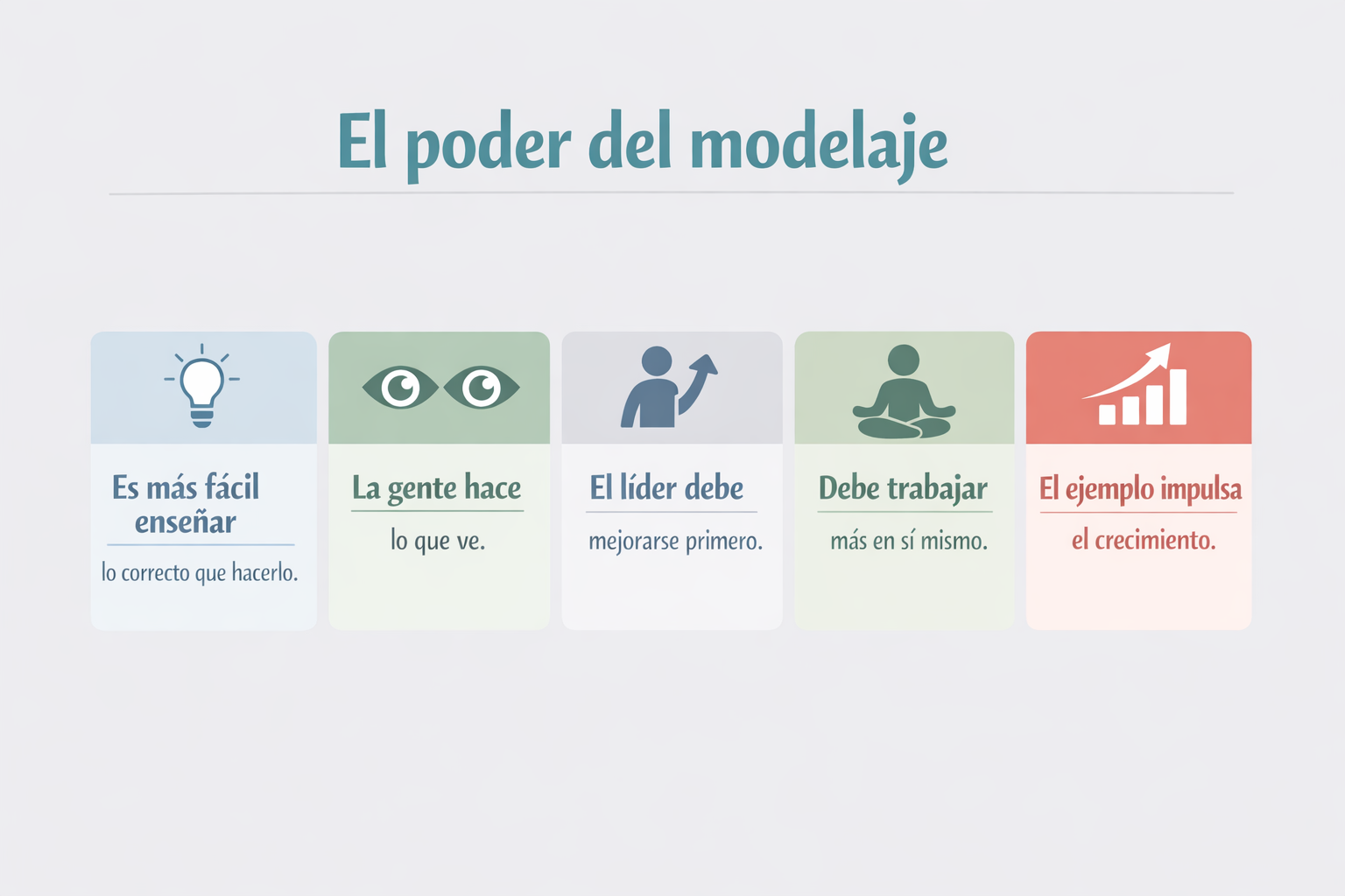 El modelaje es la práctica consciente de alinear conducta, carácter y expectativas de manera que el líder se convierta en el estándar viviente que guía al equipo.