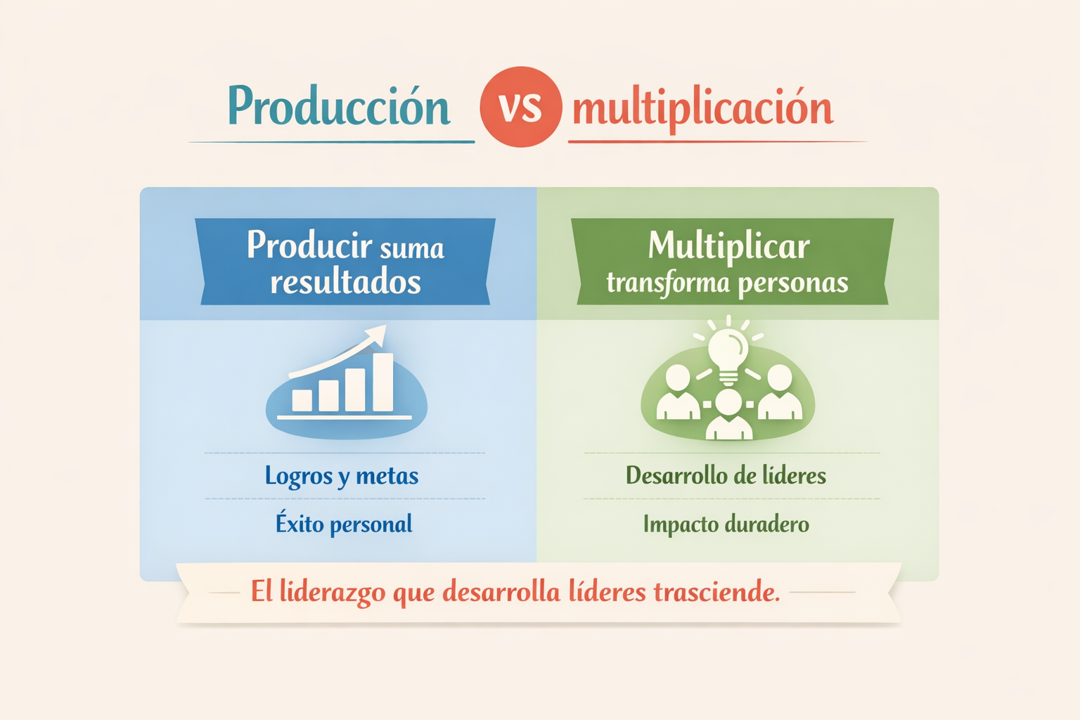 La producción permite alcanzar metas; la multiplicación permite construir futuro. Un líder puede ser efectivo produciendo, pero solo se vuelve trascendente cuando desarrolla líderes que continúan su visión.