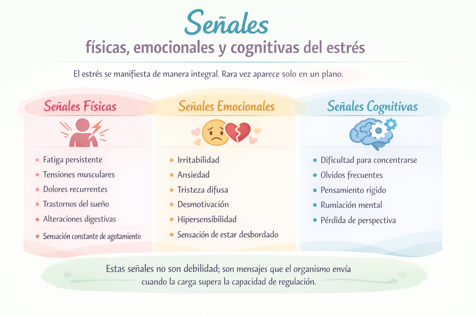 Estas señales no son debilidad; son mensajes que el organismo envía cuando la carga supera la capacidad de regulación.