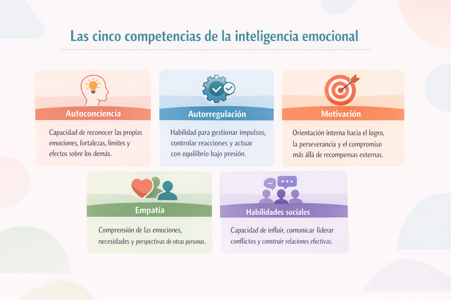 El modelo de Goleman se estructura en cinco competencias clave aplicadas al ámbito empresarial: