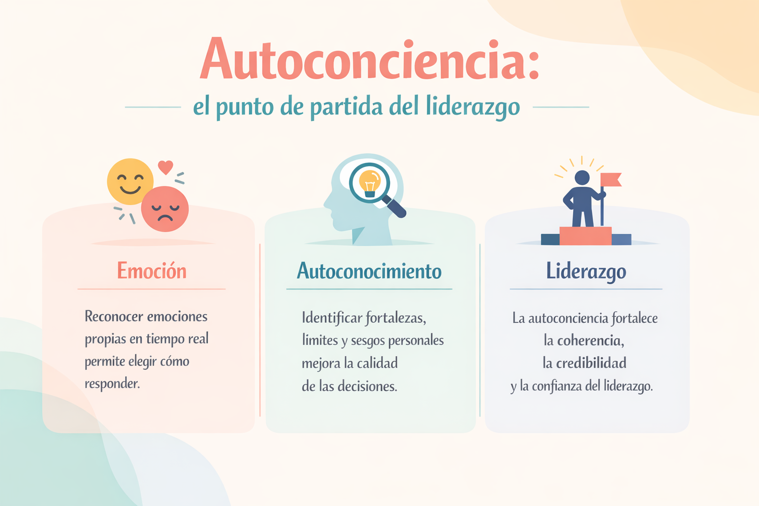 Cuando un líder identifica lo que siente —tensión, miedo, entusiasmo, frustración— puede elegir cómo responder. Sin esta conciencia, la emoción actúa de manera automática, dirigiendo el comportamiento sin pasar por un filtro reflexivo.