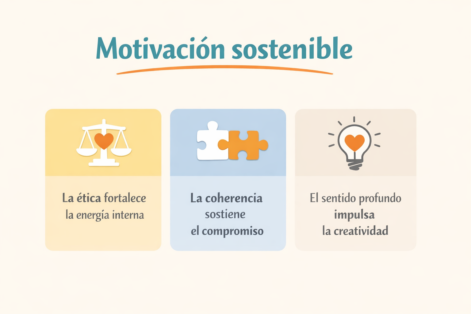 La motivación es el motor de la creatividad y la innovación. A largo plazo, la ética, la coherencia y la paz interna se convierten en los motivadores más profundos y sostenibles.