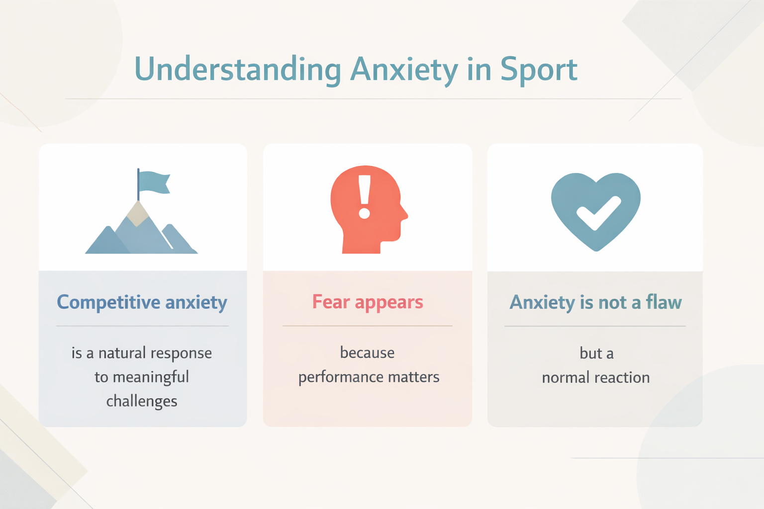 Competitive anxiety is not a flaw but a natural response to meaningful challenges. High-stakes environments activate fear because performance matters.