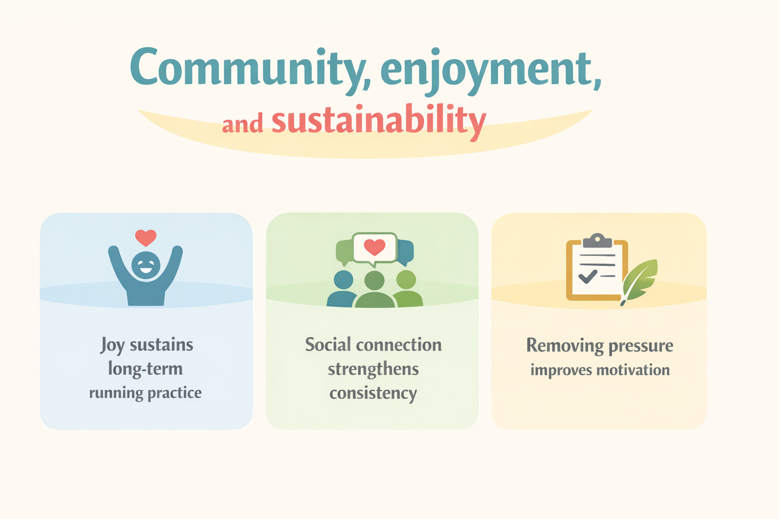 Enduring running cultures emphasize joy and social connection over ego and immediate performance. Pleasure sustains long-term practice.